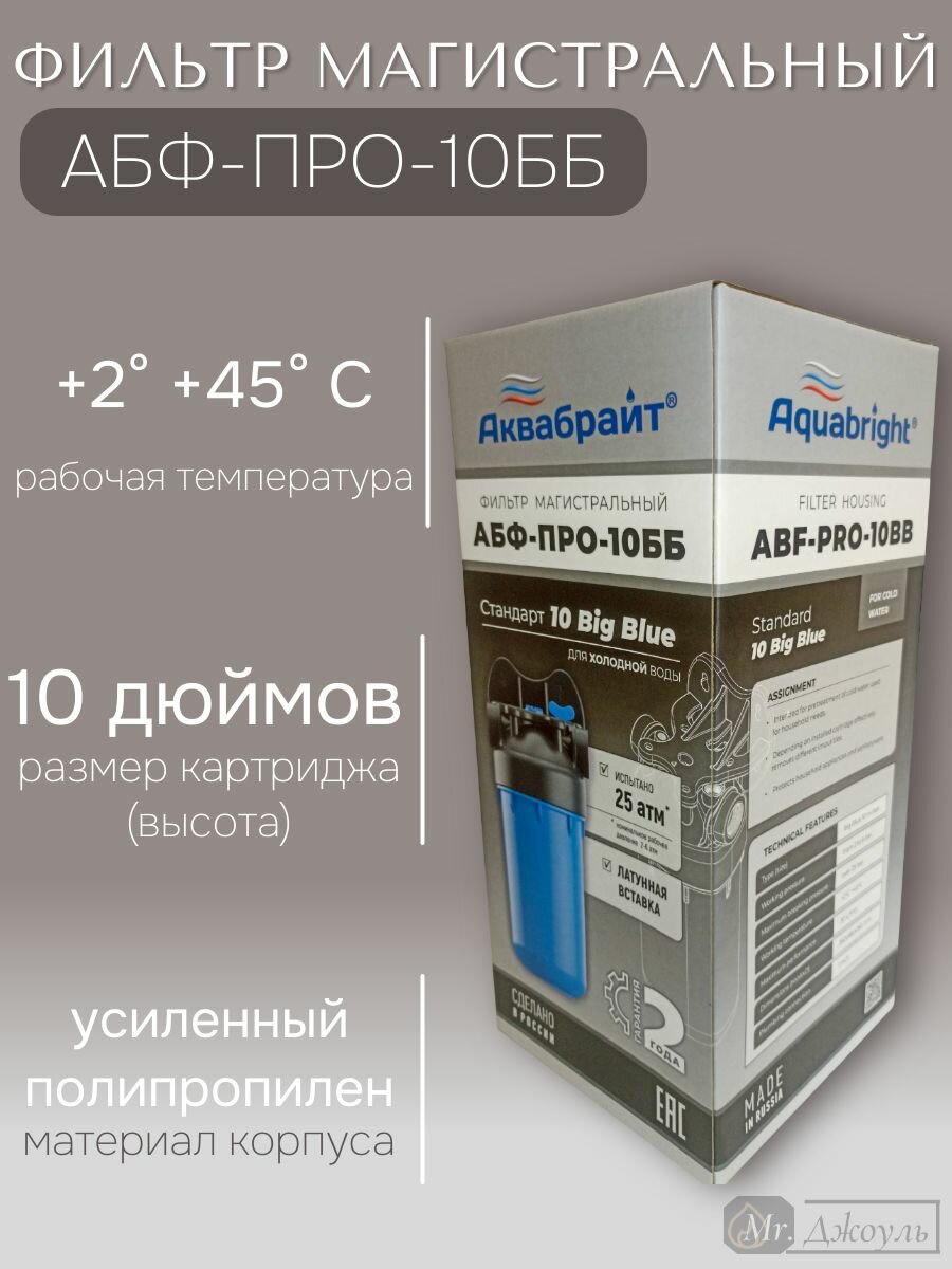 Магистральный фильтр для воды Аквабрайт АБФ-ПРО-10ББ информация: