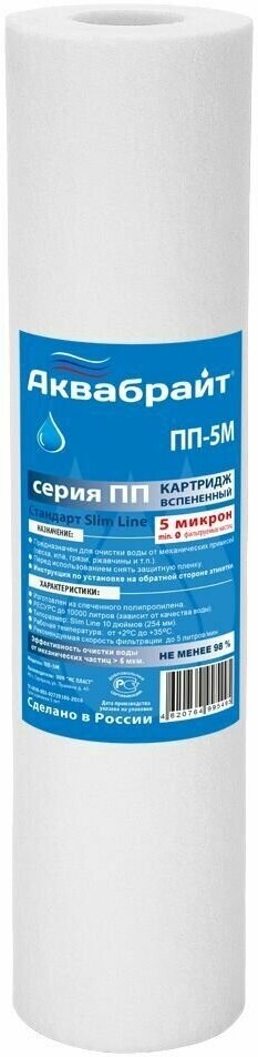 Корпус (колба) для фильтра BP-16 (2к), диаметр 1" с картриджем PP-10SL 5 мкм, корпус фильтра пластиковый / фильтр 10sl для Аквафор, Барьер, Гейзер