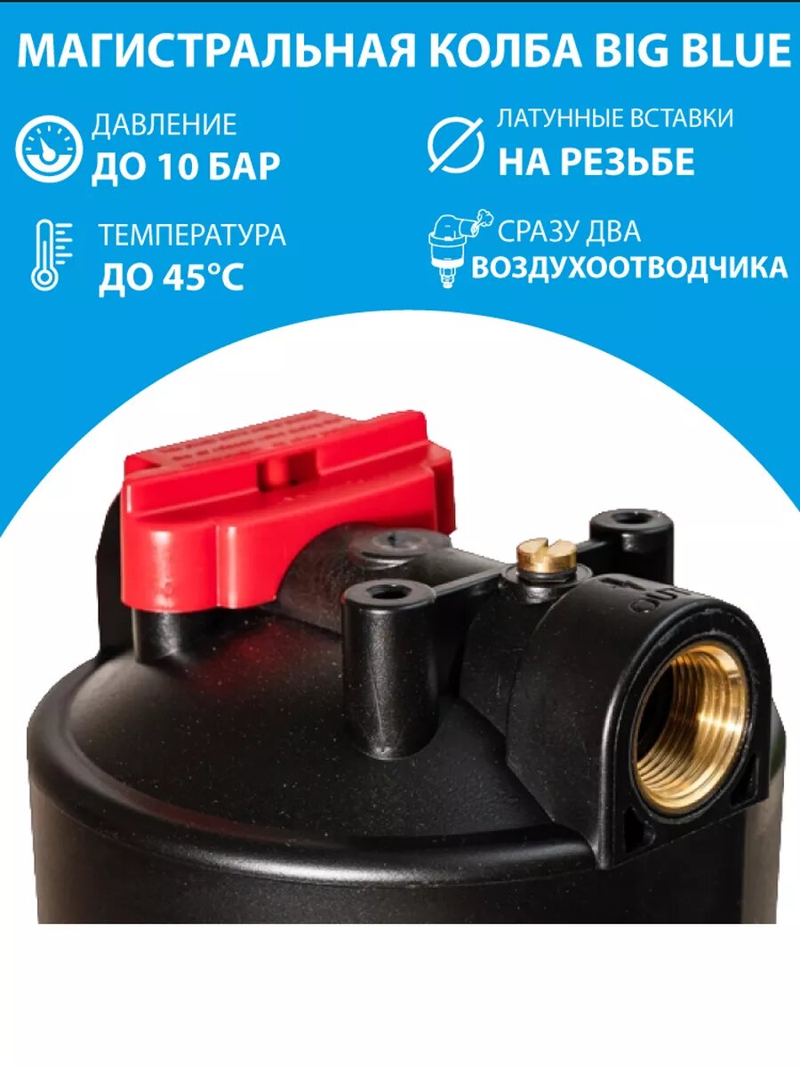 Отзывы на Магистральный фильтр для воды Virmut Big Blue 10" синий стандарт Биг Блю 10 с крепежом, резьба 1"
