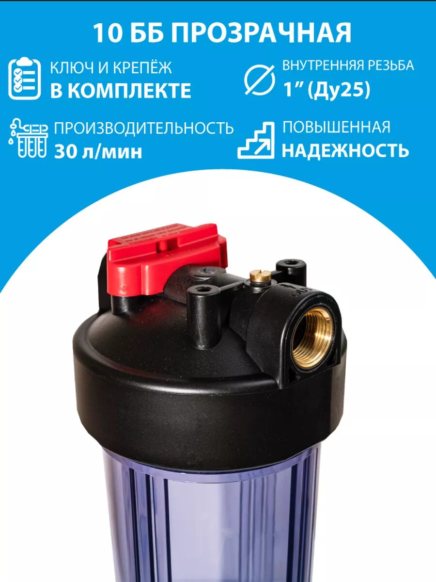 10 цен на Магистральный фильтр для воды Virmut Big Blue 10" прозрачный стандарта Биг Блю 10, резьба 1"