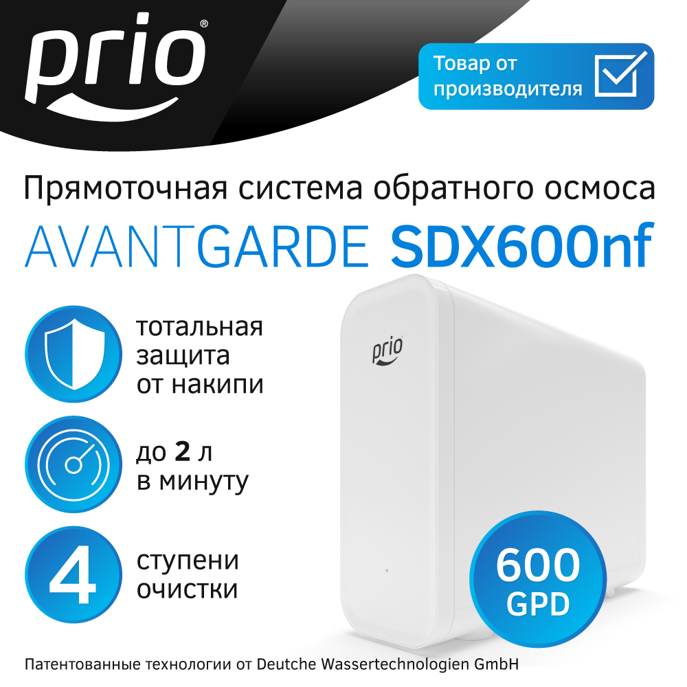 10 цен на Прямоточная система обратного осмоса "всё-в-одном" Prio SDX600nf Avantgarde (без крана для чистой воды)