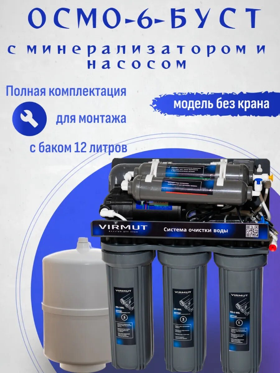 Фильтр обратного осмоса с насосом и минерализатором Virmut Осмо 6 Буст информация: