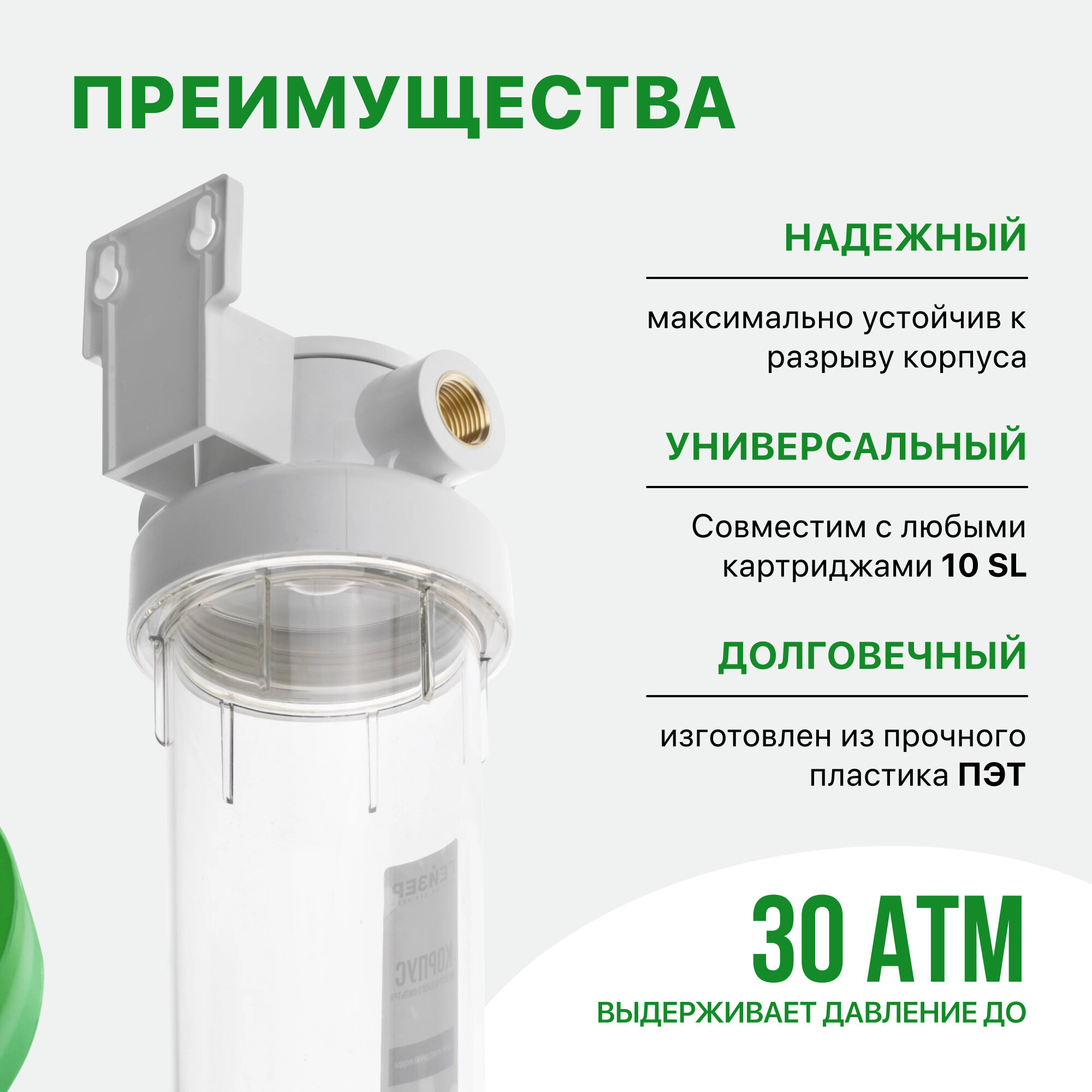10 цен на Корпус магистрального фильтра Гейзер Гарант 10SL 3/4, для холодной воды, защита сантехники, бытовых приборов, 50775