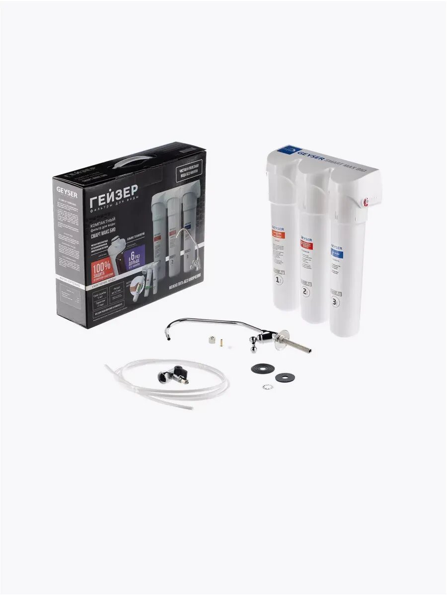 10 цен на Фильтр для воды под мойку Гейзер Смарт Макс Био, с краном, 100% удаление бактерий и вирусов, для жесткой воды, 16031