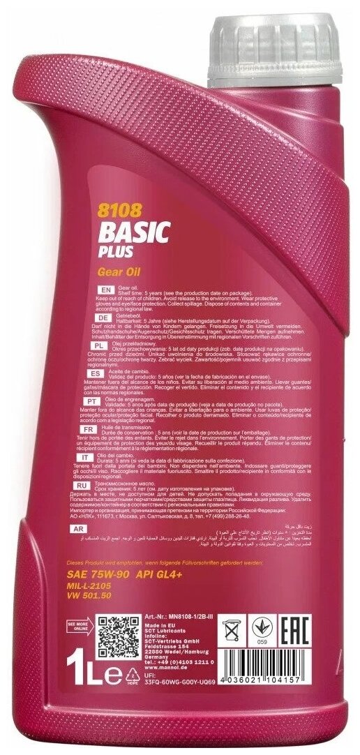 75w-90 1l 8108 Basic Plus Трансмиссионное Масло MANNOL арт. 1321 1 180 ₽