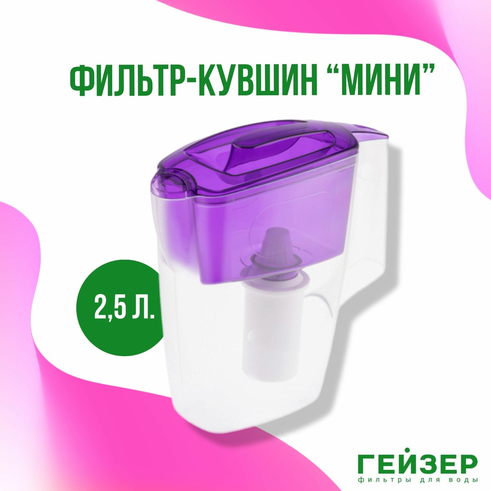 Фильтр-кувшин Гейзер Мини, 2,5 л, с картриджем, фиолетовый информация: