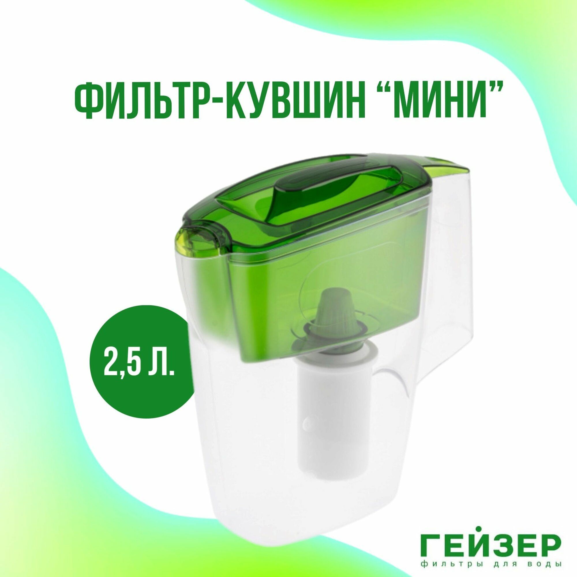 Фильтр-кувшин Гейзер Мини, 2,5 л, с картриджем, зеленый информация: