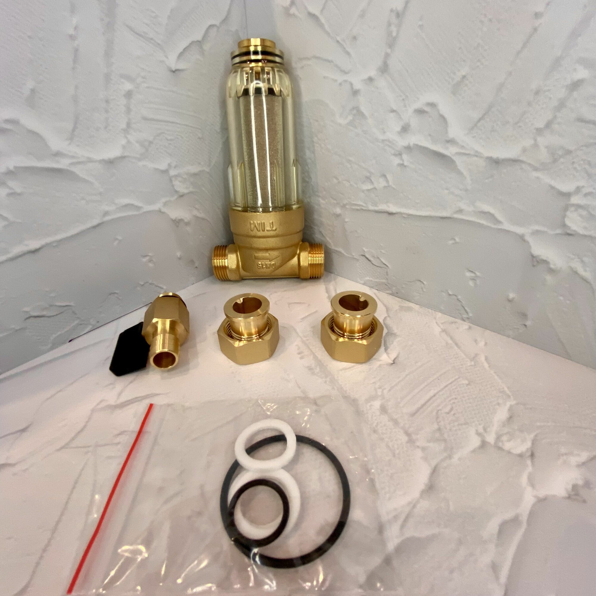 Фильтр самопромывной 1/2 с манометром, американками, сливным краном, прозрачный корпус TIM-JH-1002