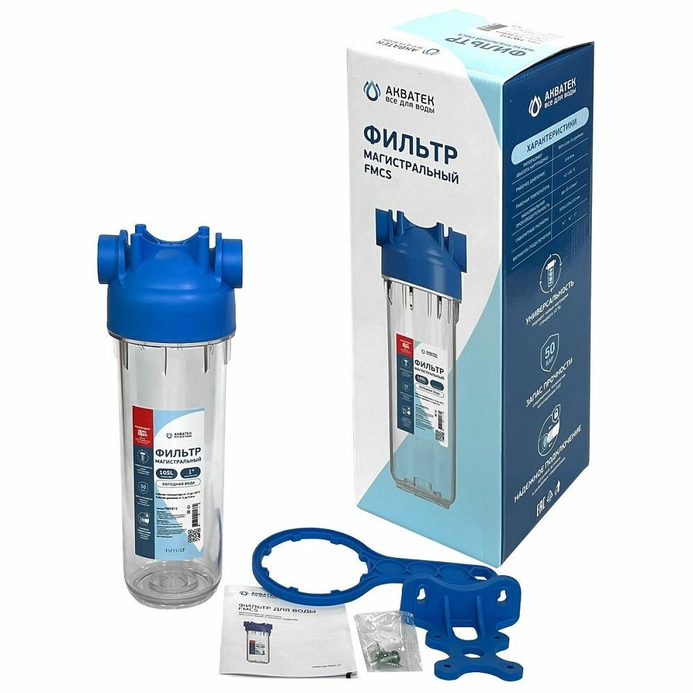 10 цен на Фильтр магистральный для холодной воды 1", без картриджа (прозрачный корпус ПЭТ 10) Акватек