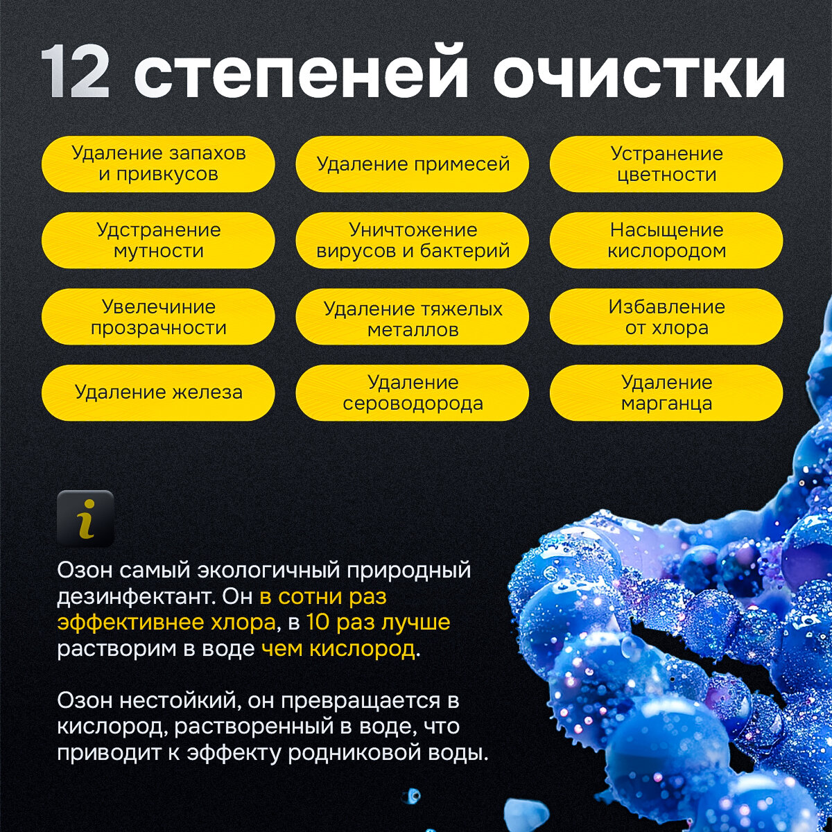 | Функции | обеззараживание / обогащение кислородом / обезжелезивание / очистка от свободного хлора |