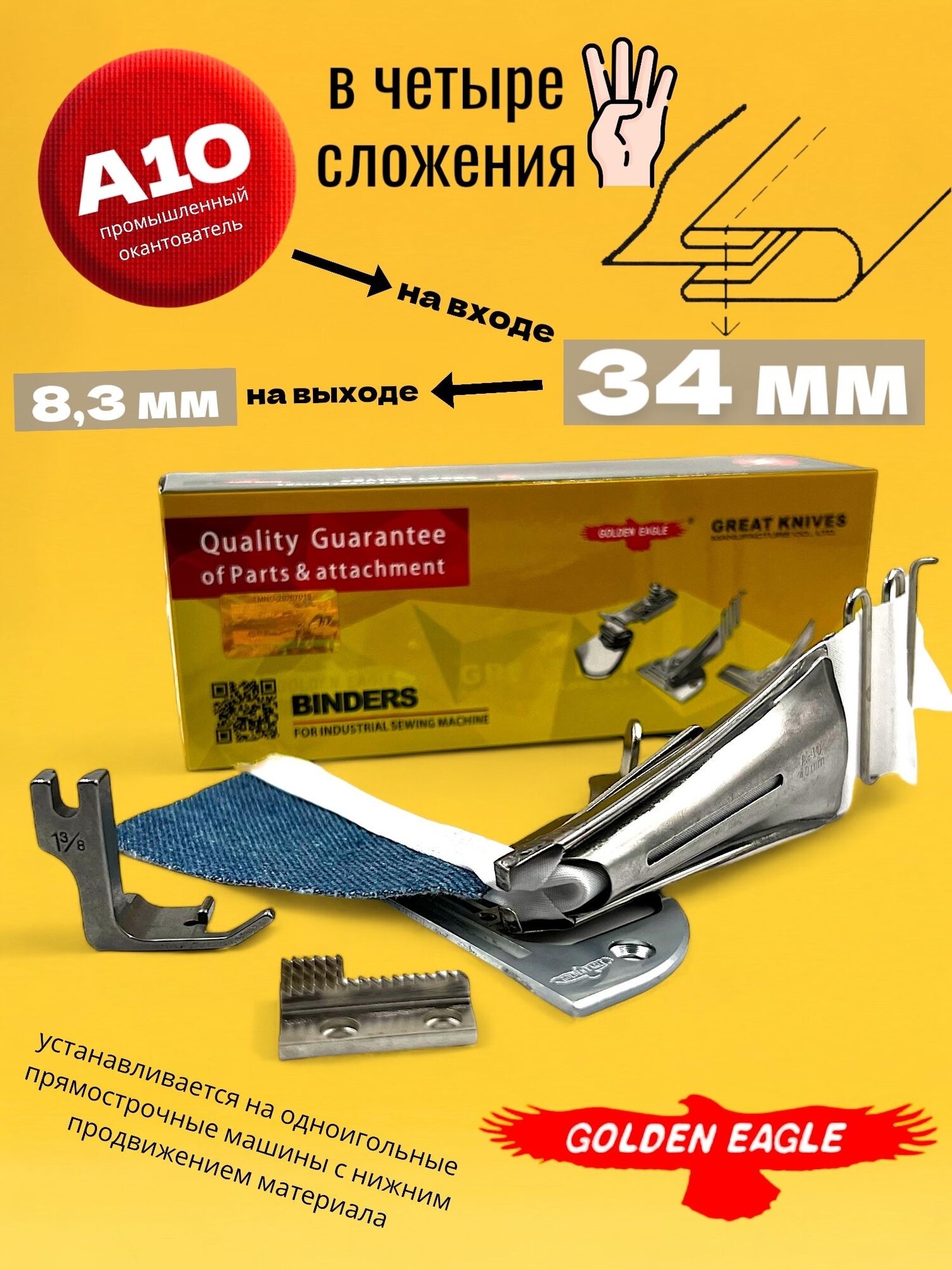 Окантователь A10 (вход 34мм) в 4-сложения для промышленной швейной машины информация: