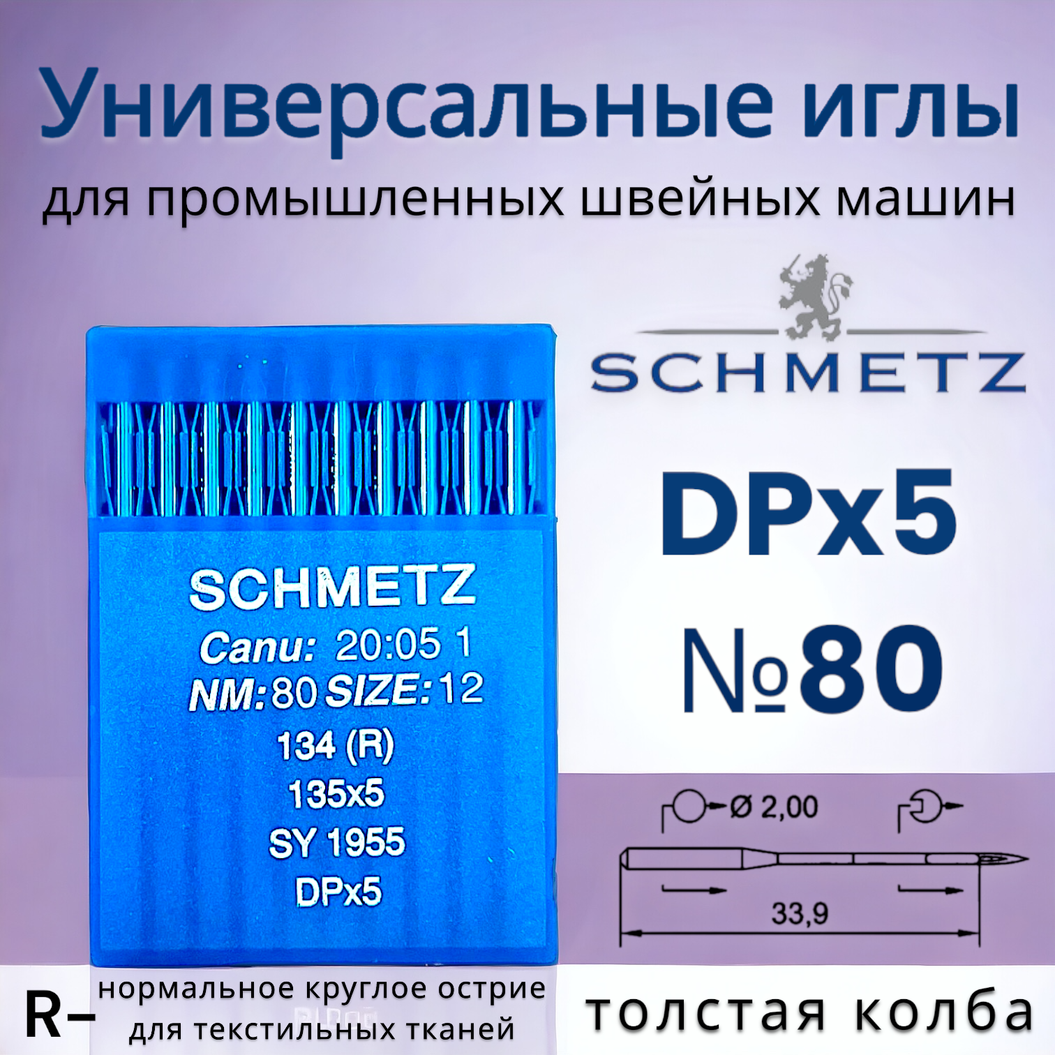 Иглы для промышленных швейных машин SCHMETZ DPx5 (134) R №80/ толстая колба информация: