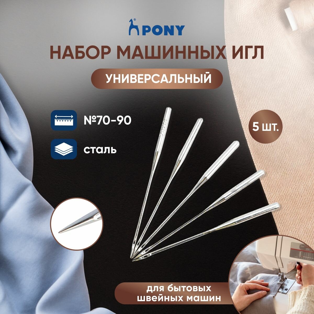 10 цен на Иглы для швейных машин № 70-90 универсальные, PONY, 51001, 5 шт