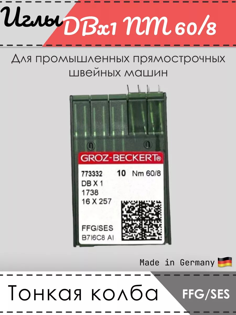 Иглы швейные для ПШМ, DBх1, 1738, Nm 60/8, FFG/SES информация: