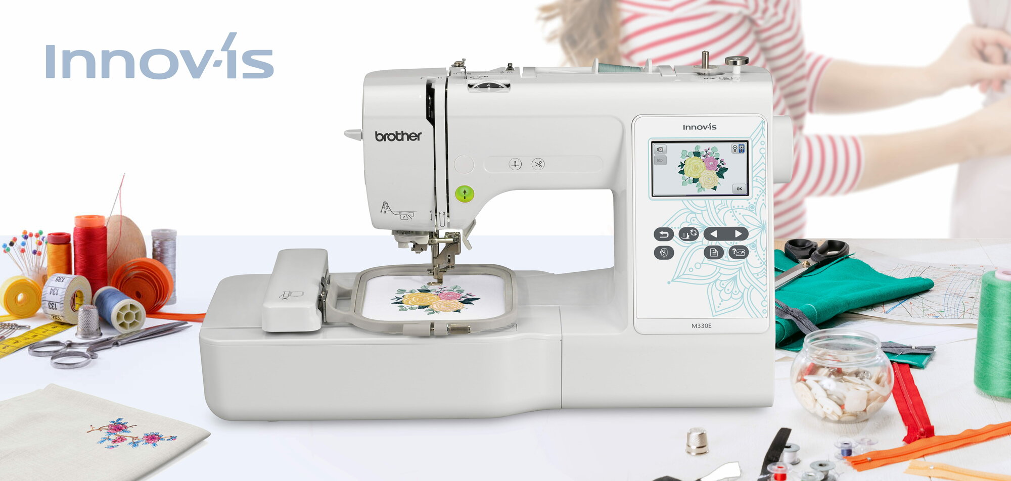 10 цен на Вышивальная Машина Brother M330E, с подключением по WIFI, с USB-портом и цветным дисплеем.