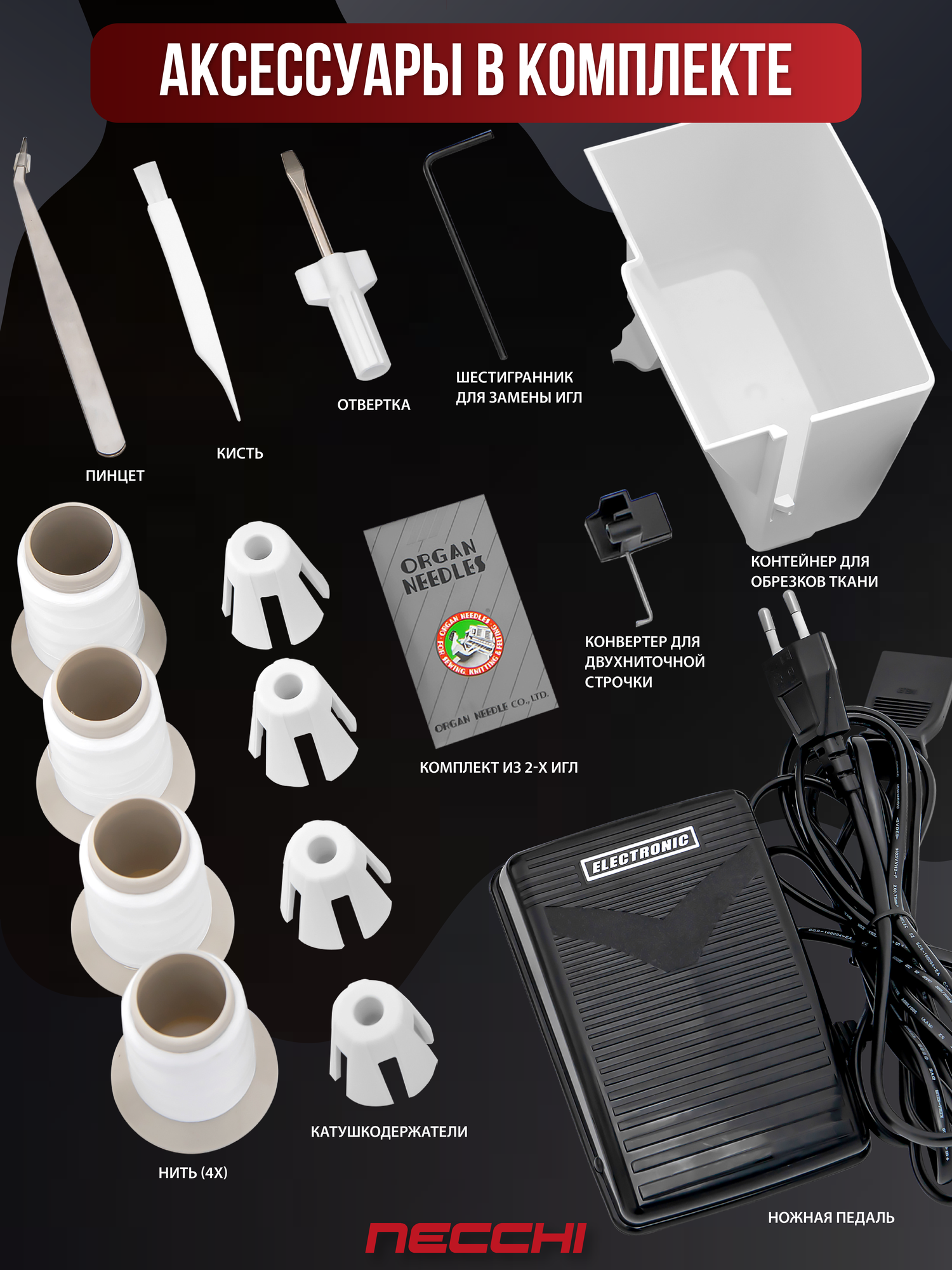 10 цен на Оверлок Necchi NL12C, 12 швов, съемная рукавная платформа , регулятор давления на ткань