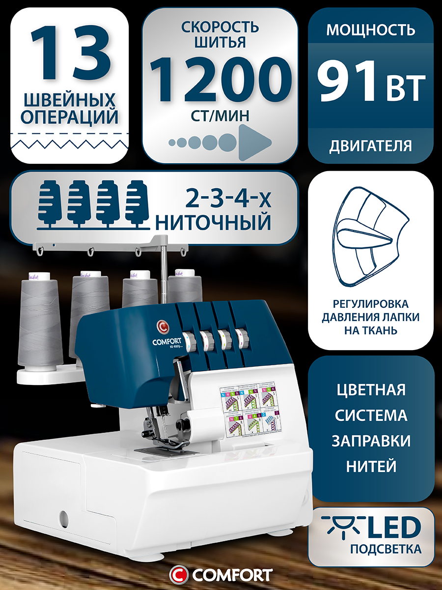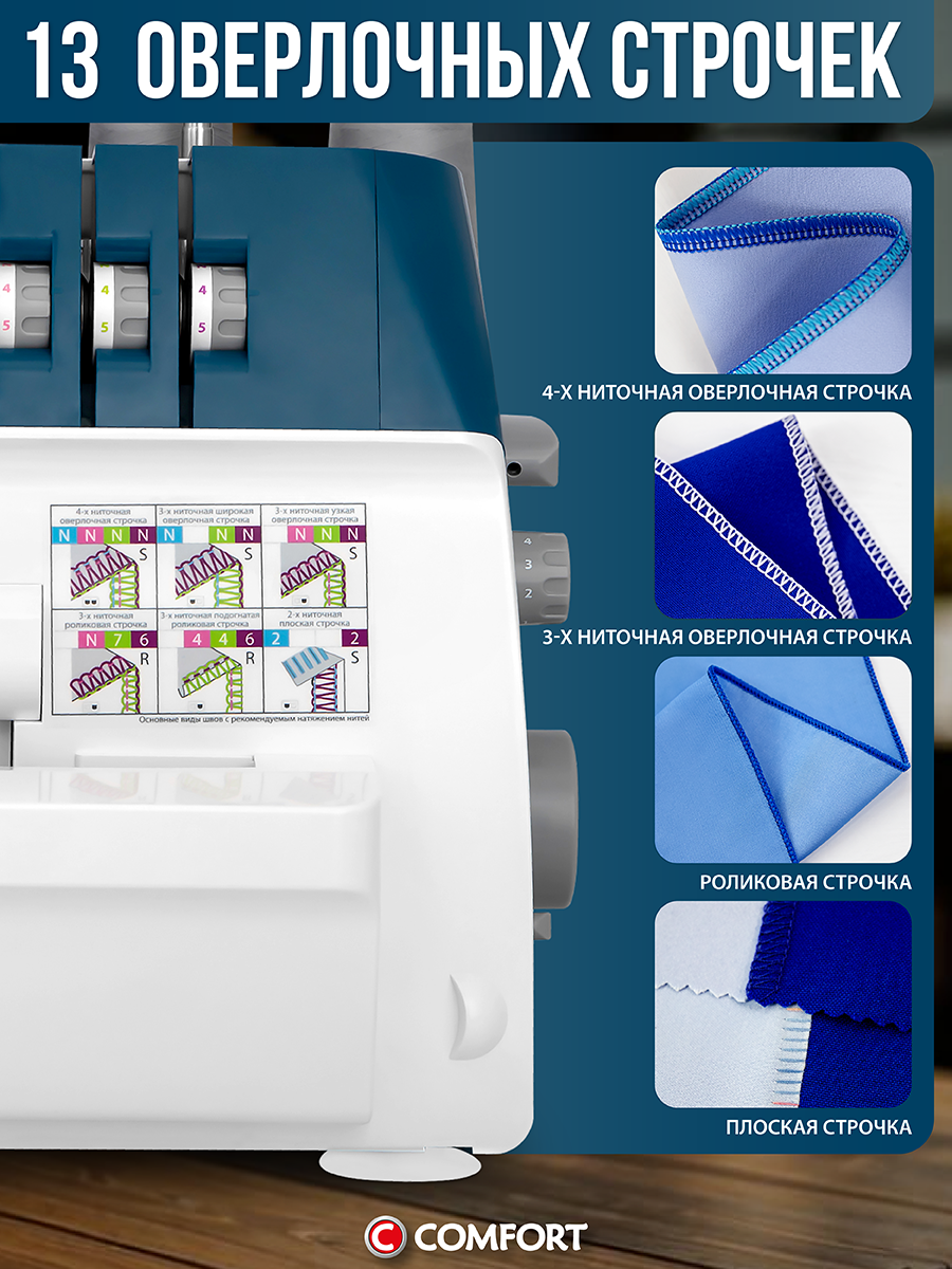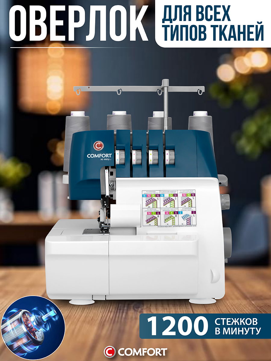 10 цен на Оверлок Comfort 4500D, 2-3-4х ниточный, рукавная платформа, мусоросборник