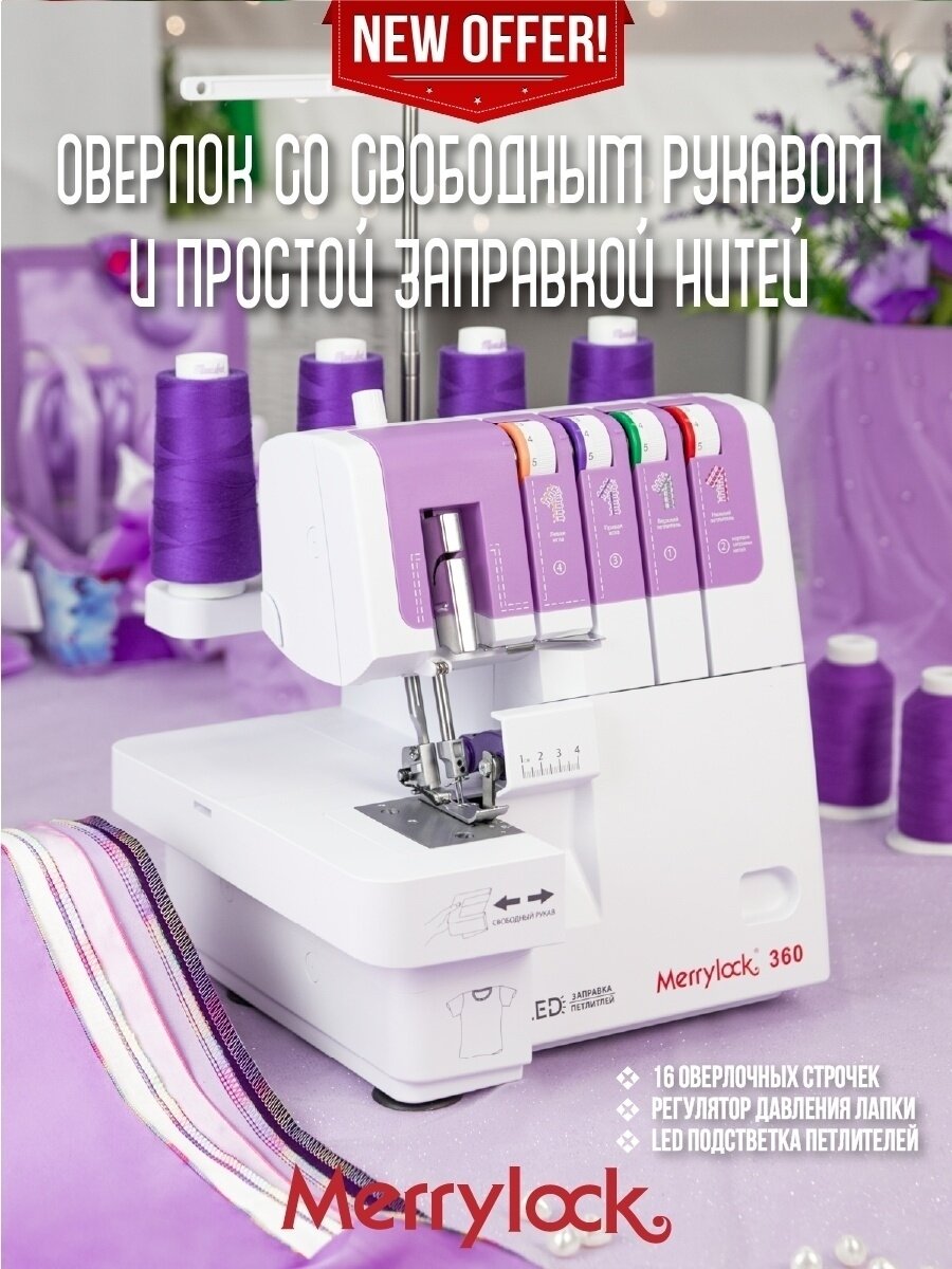 10 цен на Оверлок Merrylock, 16 видов швов, регулятор давления лапки, дифференциал