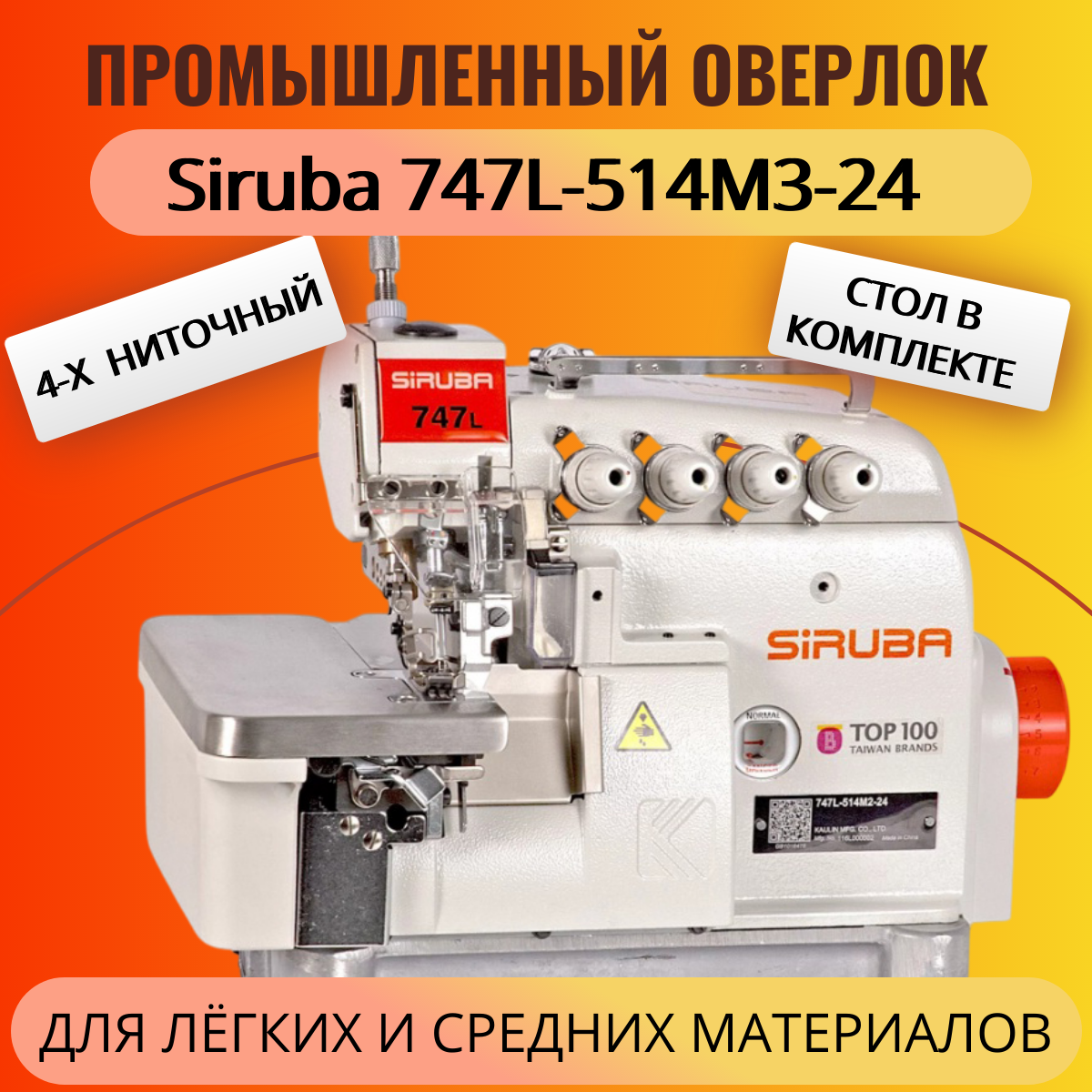 Оверлок Siruba 747L-514M3-24-DKLU, 4 -х ниточный, встроенный серводвигатель информация: