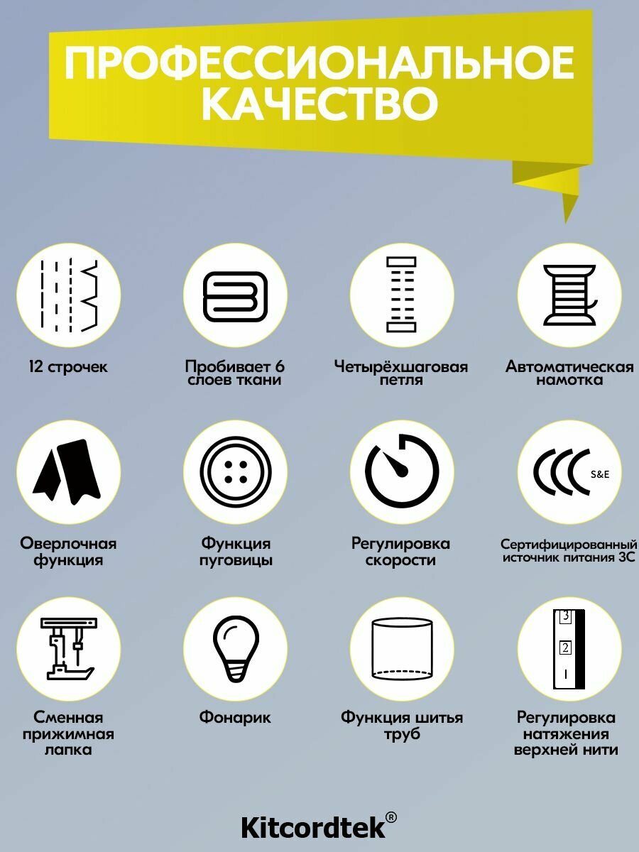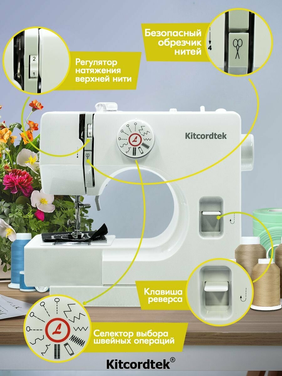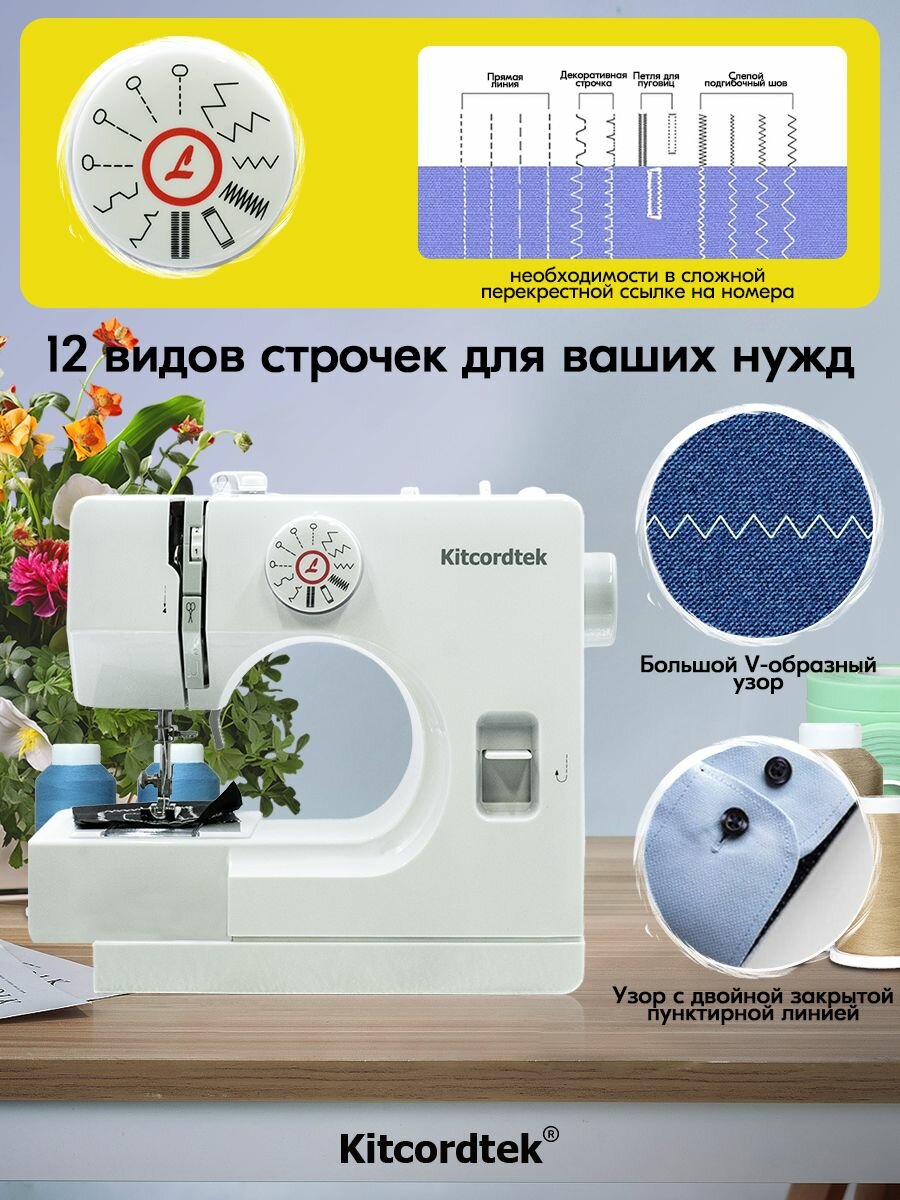 10 цен на Швейная машинка мини электрическая KTC-9925 с педалью, 12 типов стежков, 2 скорости + педаль