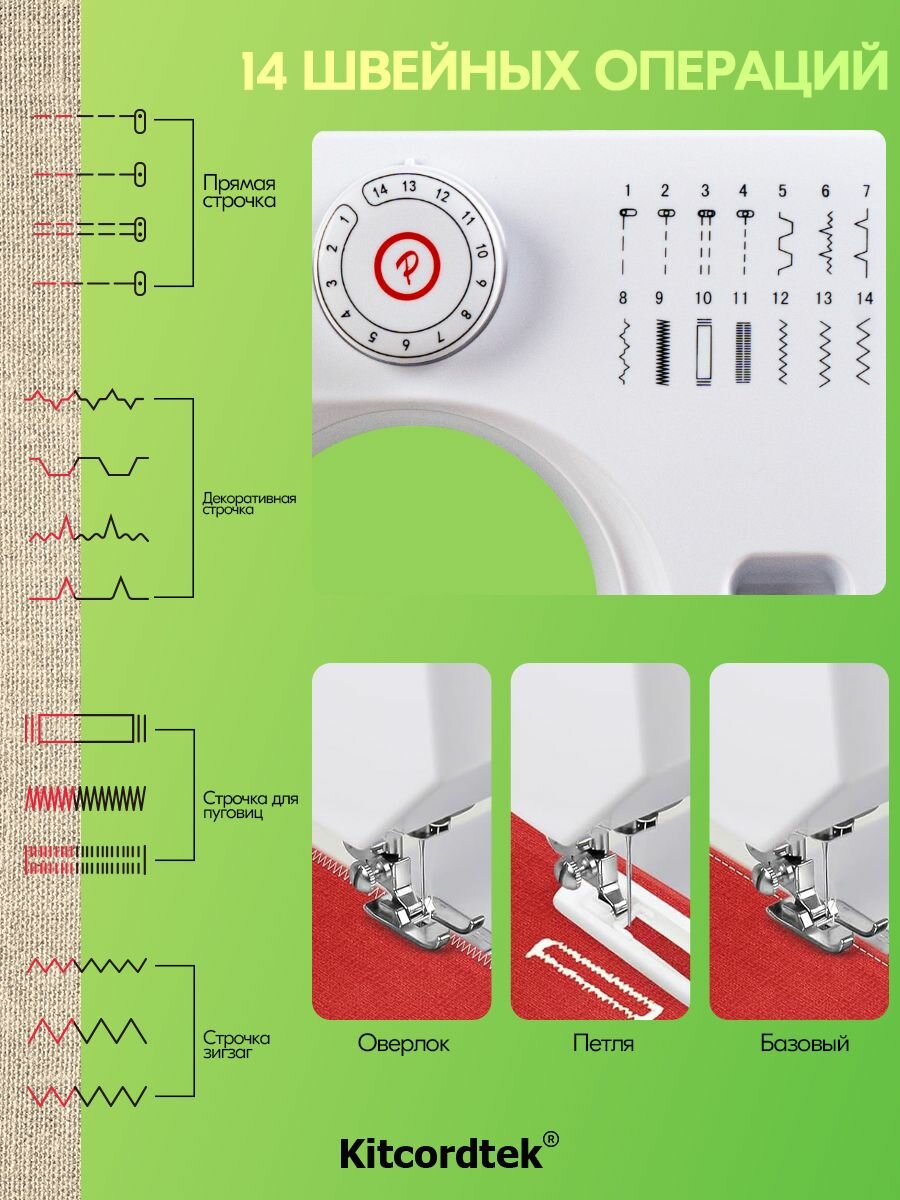 Отзывы на Швейная машинка KTC-9905, с педалью и столиком, 14 видов строчек, 350 стежков/ми
