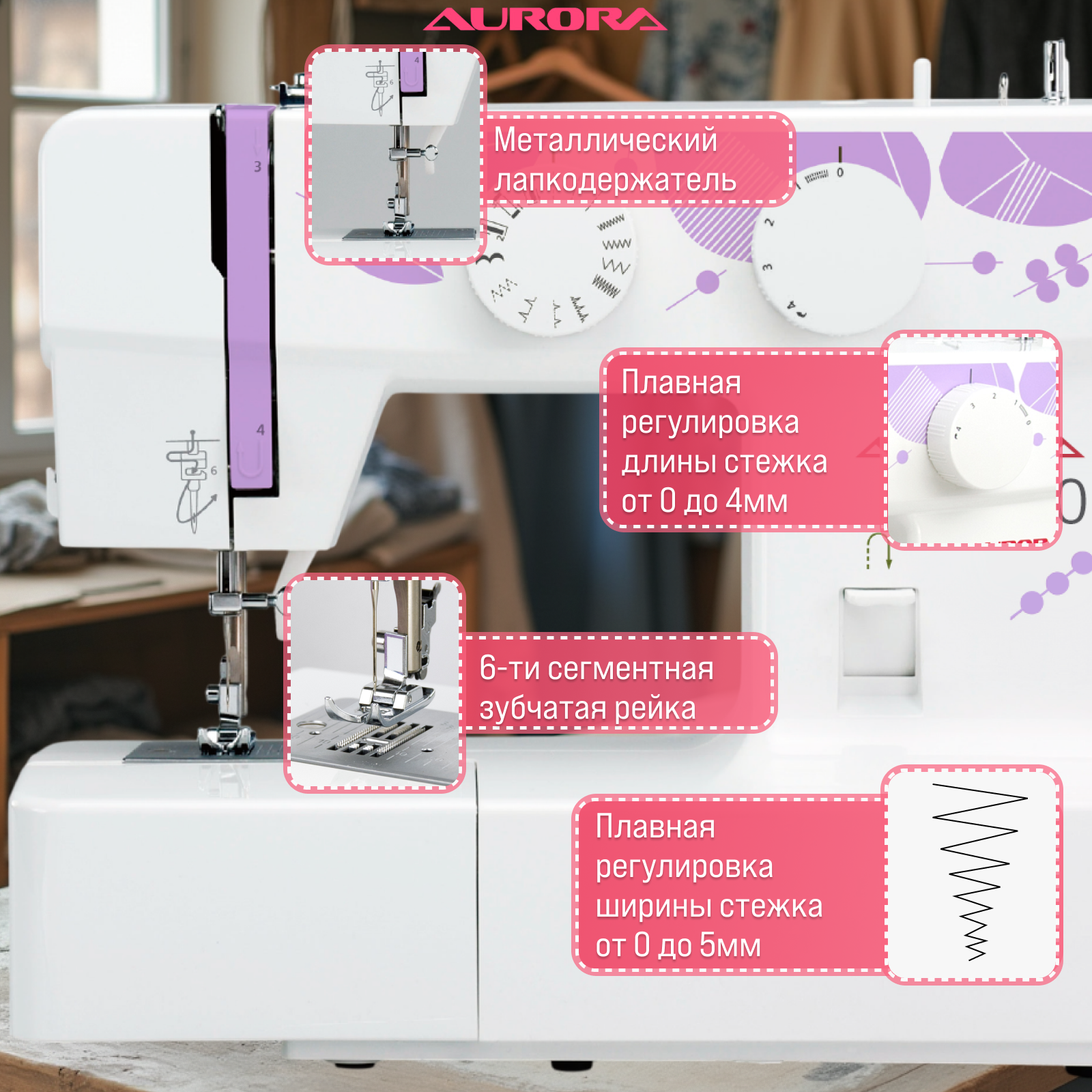 10 цен на Швейная машинка AURORA 550 с металлической станиной, металлическим челноком и с металлическим лапкодержателем.