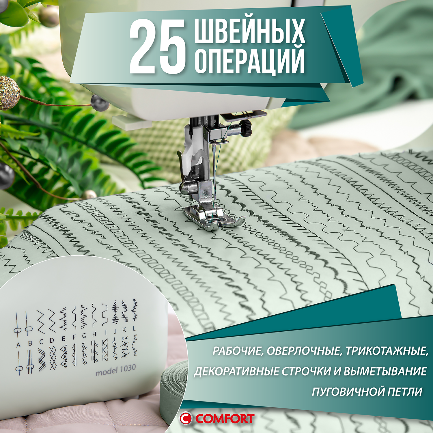 10 цен на Швейная машина Comfort 1030, 24 операции, петля полуавтомат, нитевдеватель, двигатель 100Вт