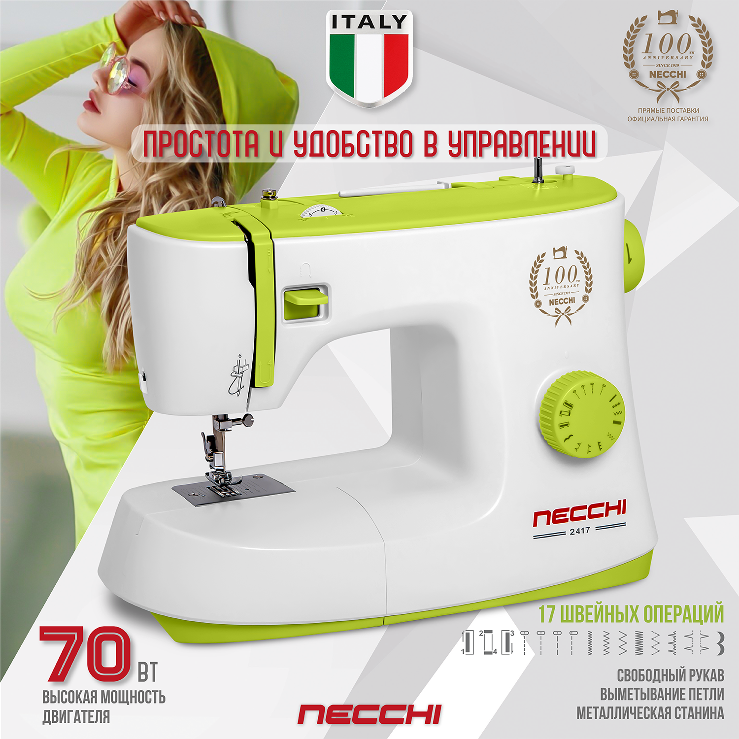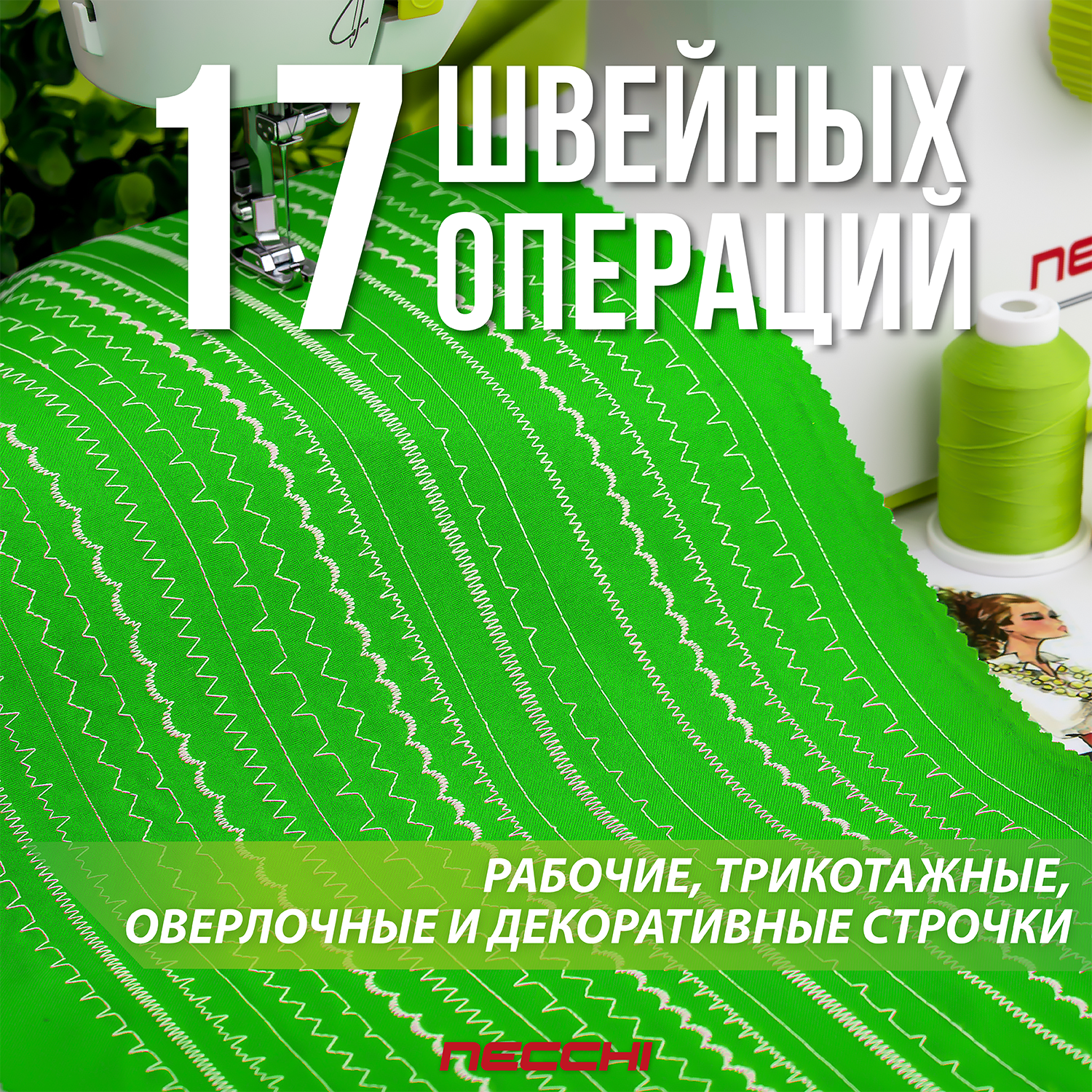 Швейная машина Necchi 2417, 17 операций, петля полуавтомат, вертикальный челнок информация: