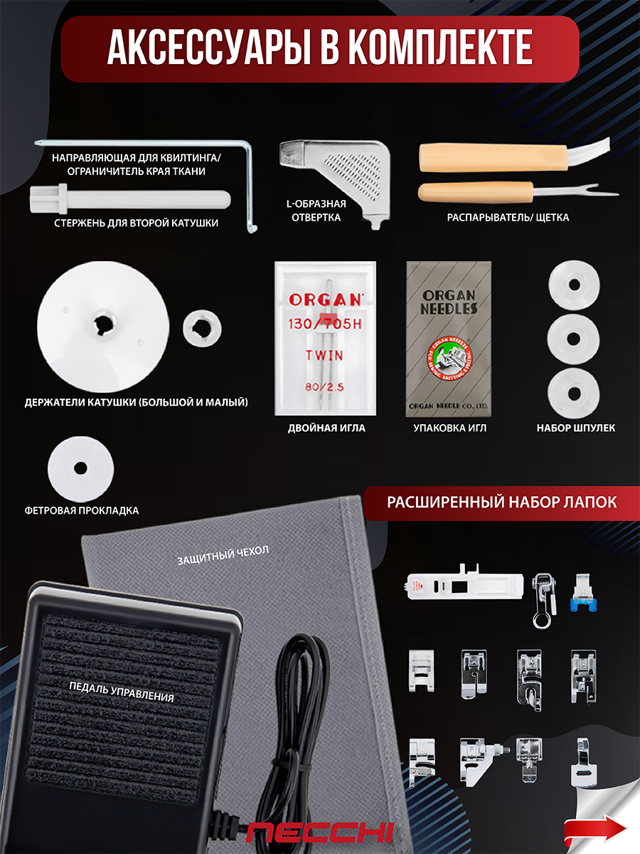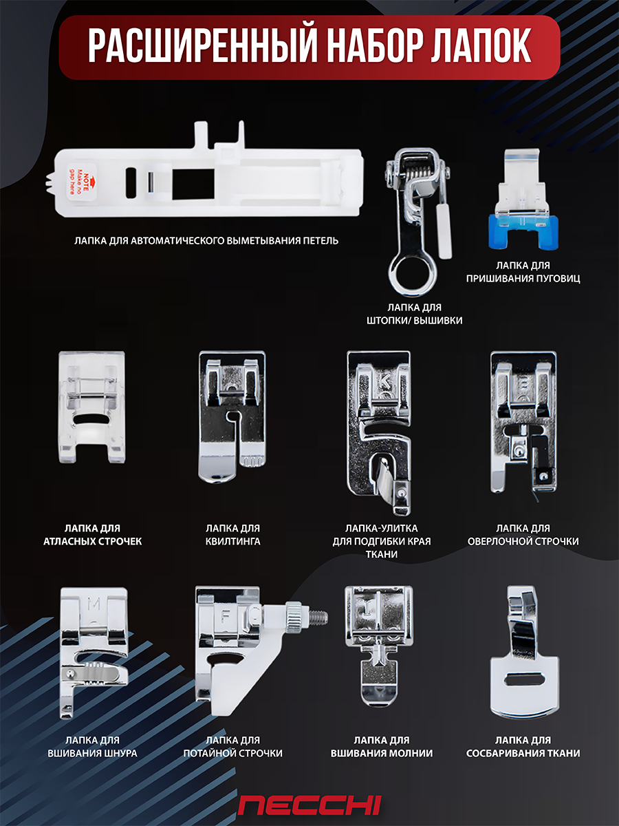 Швейная машина Necchi NC-104D, 316 операций, 10 видов петель, дополнительный столик, нитевдеватель информация: