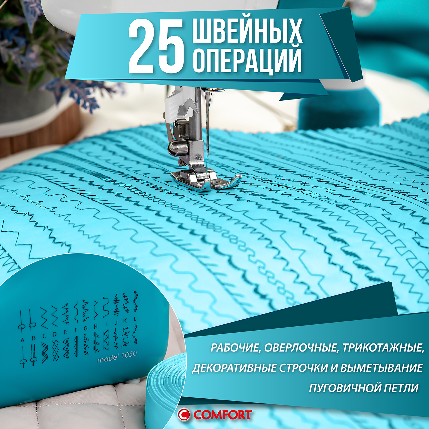 10 цен на Швейная машина Comfort 1050, 25 операций, петля полуавтомат, нитевдеватель, мощный двигатель 100Вт