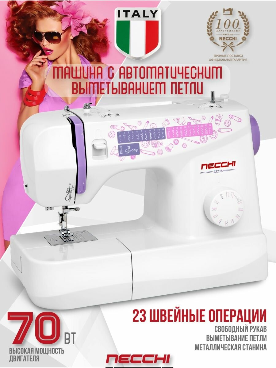 Швейная машина Necchi 4323A, 23 операции, петля автомат , вертикальный челнок информация: