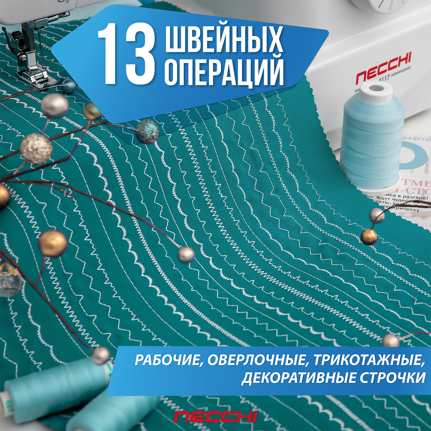 Швейная машина Necchi 4117, 13 операций, петля полуавтомат, вертикальный челнок информация: