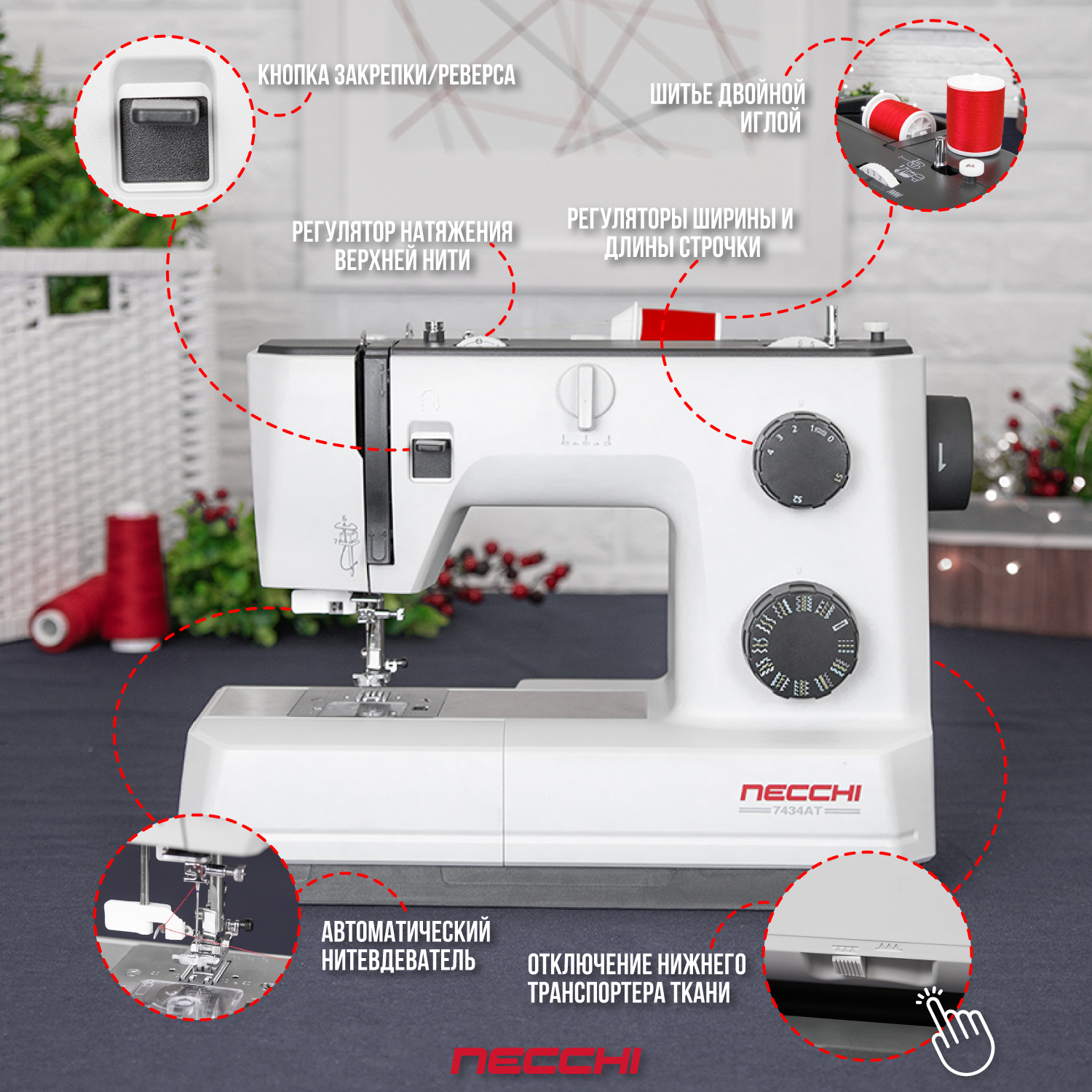 Мы выбрали 10 лучших цен на Швейная машина Necchi 7434AT, 34 операции, петля автомат, нитевдеватель, столик в комплекте. Перед тем как купить Швейная машина Necchi 7434AT, 34 операции, петля автомат, нитевдеватель, столик в комплекте посмотрите найденные предложения из Яндекс Маркета и других сайтов на основе XML фидов.