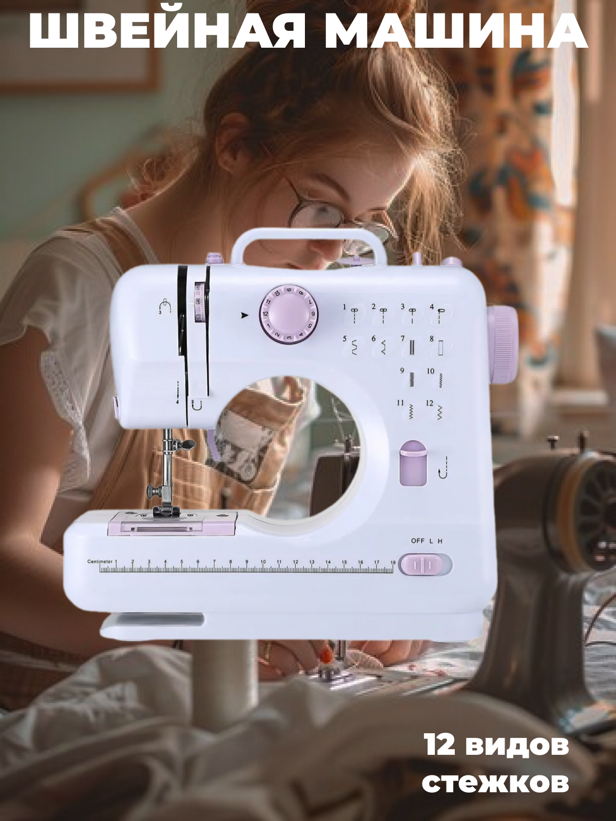 10 цен на Мини-швейная машинка CARTE, электромеханическая, 12 строчек, белая/сиреневая
