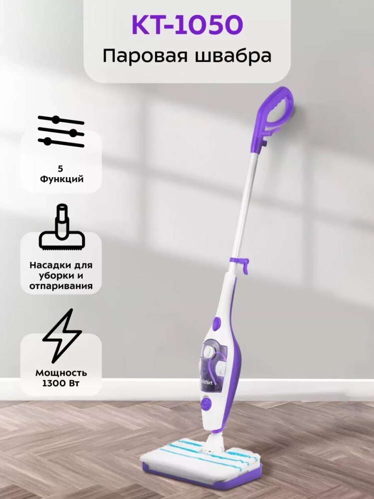 Паровая швабра с насадками КТ-1050 (2 в 1) - 1500 Вт информация: