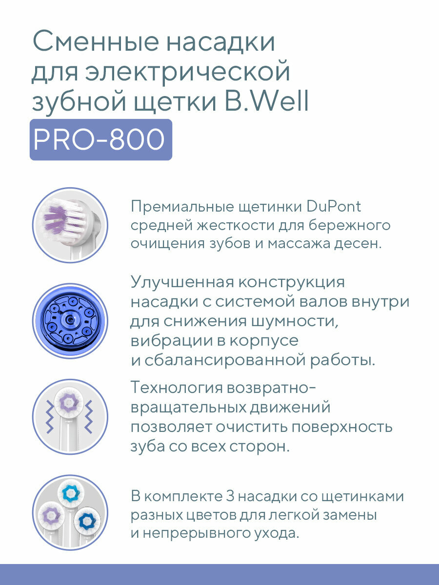 Сменные насадки для электрической зубной щетки B.Well PRO-800, белые, 3 шт. информация:
