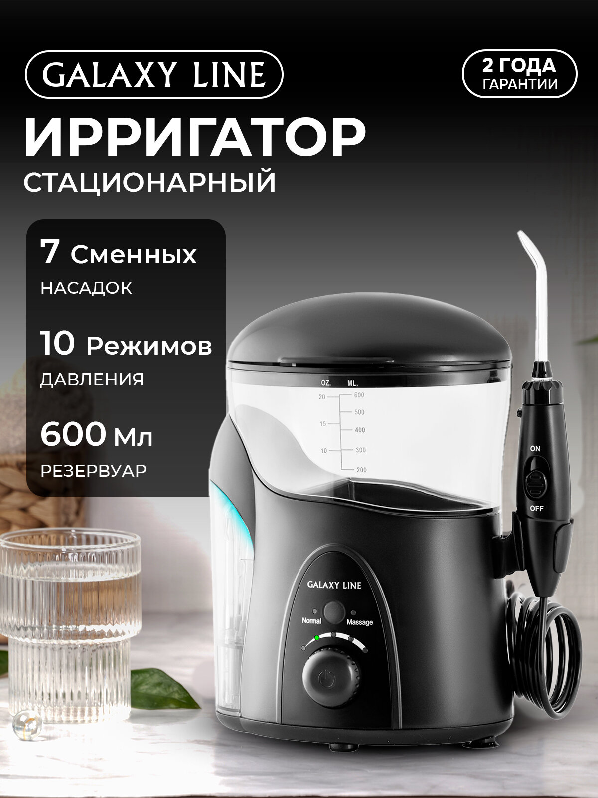 Ирригатор для полости рта Galaxy LINE GL5002, черный, 10-20 Вт, 7 насадок информация: