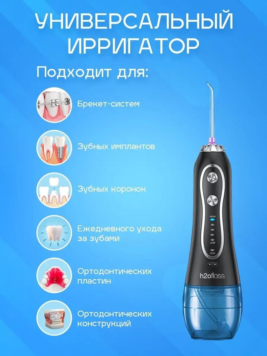 Ирригатор для полости рта портативный/для зубов,6 сменных насадок, 3 режимов для чистки зубов и брекетов языка