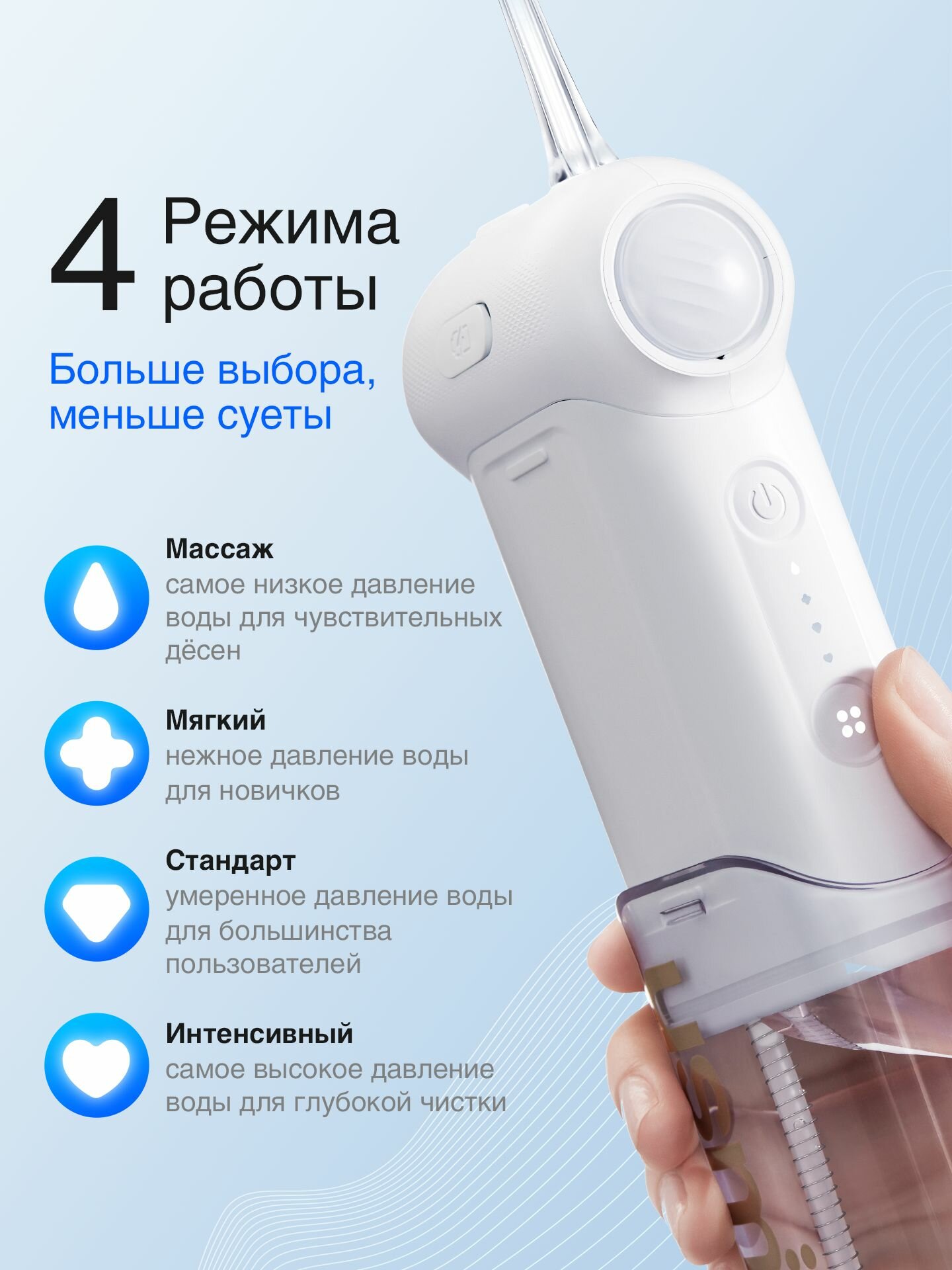 Ирригатор портативный Xiaomi Soocas W3 PRO Blue, 4 насадки в кейсе, 7 режимов, голубой
