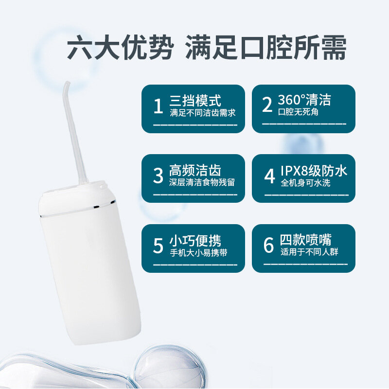 Ирригатор для полости рта портативный/для зубов,6 сменных насадок, 3 режимов для чистки зубов и брекетов языка
