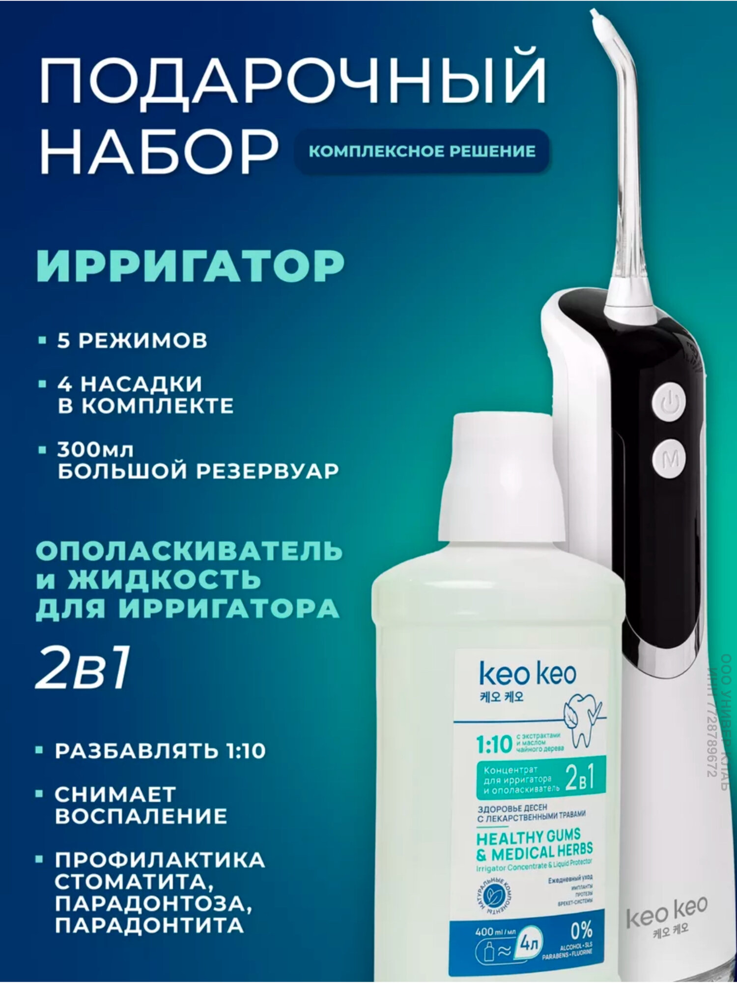 Ирригатор KEO L12-02, с концентратом для десен, ручной, на аккумуляторе, 4 насадки информация: