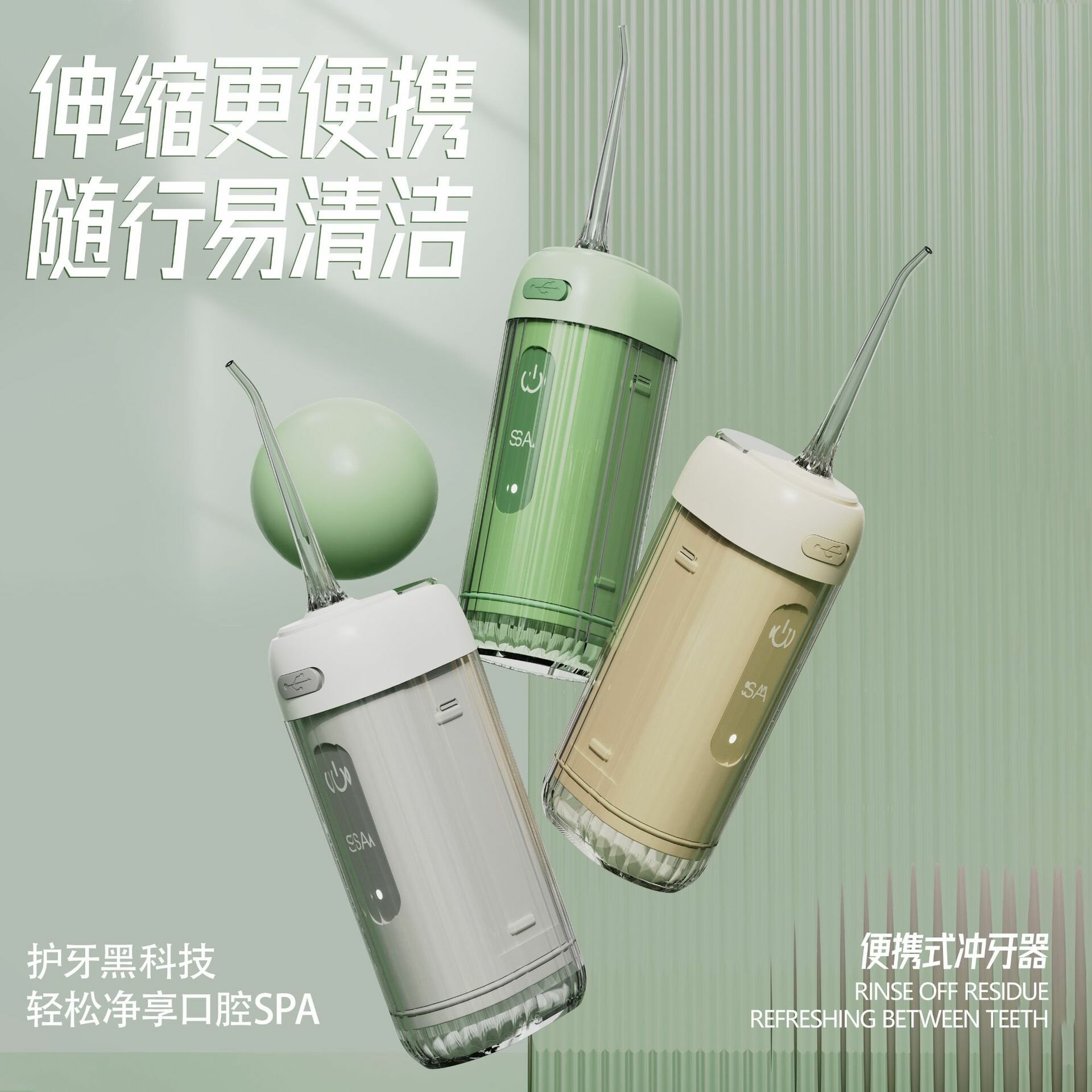 Устройство для промывки зубов "Green High Configuration", портативное, с насадками, зеленое 1 289 ₽