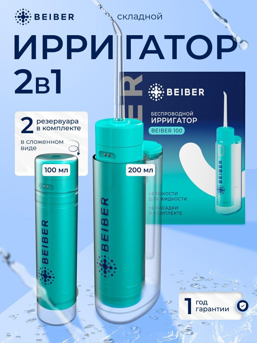 Ирригатор BEIBER, портативный, беспроводной, дорожный, бирюзовый, 200мл информация: