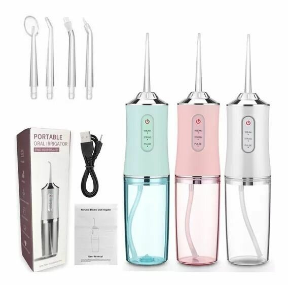 10 цен на Портативный ирригатор для гигиены полости рта + 4 насадки и 3 режима, светло-зеленый