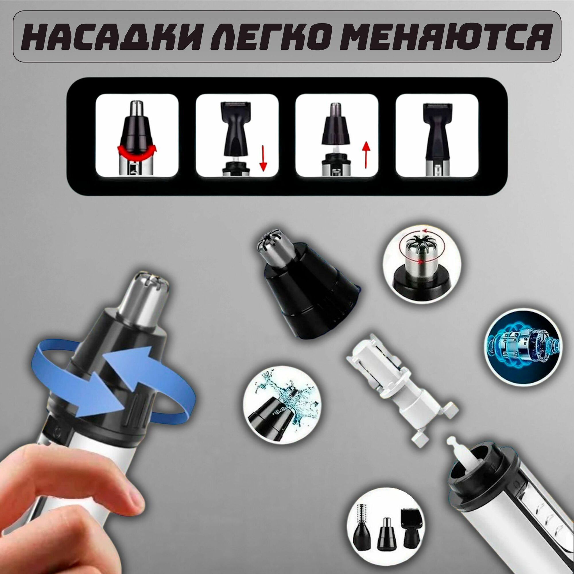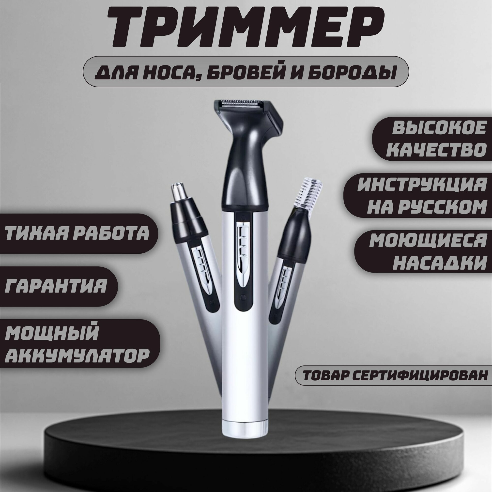 Триммер для бороды, носа и ушей, 3в1 / Машинка для стрижки бороды, усов, стрижки волос в носу / Электробритва GEEMY информация: