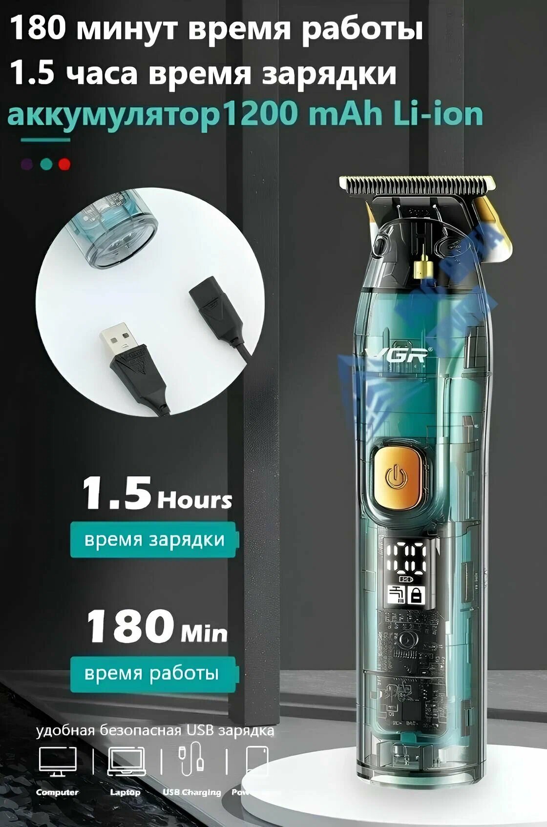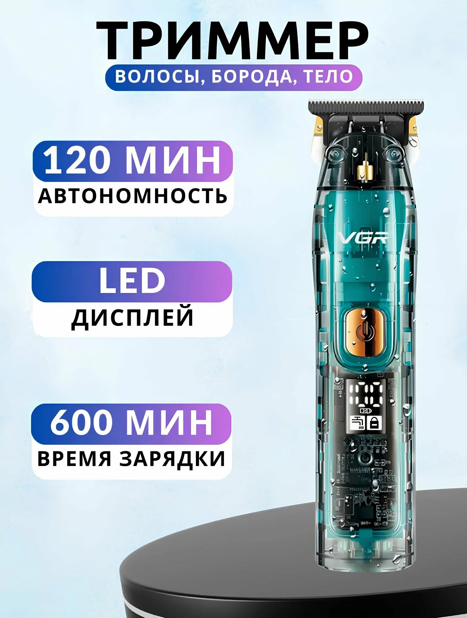 Профессиональный триммер для стрижки волос и бороды VGR V961 информация: