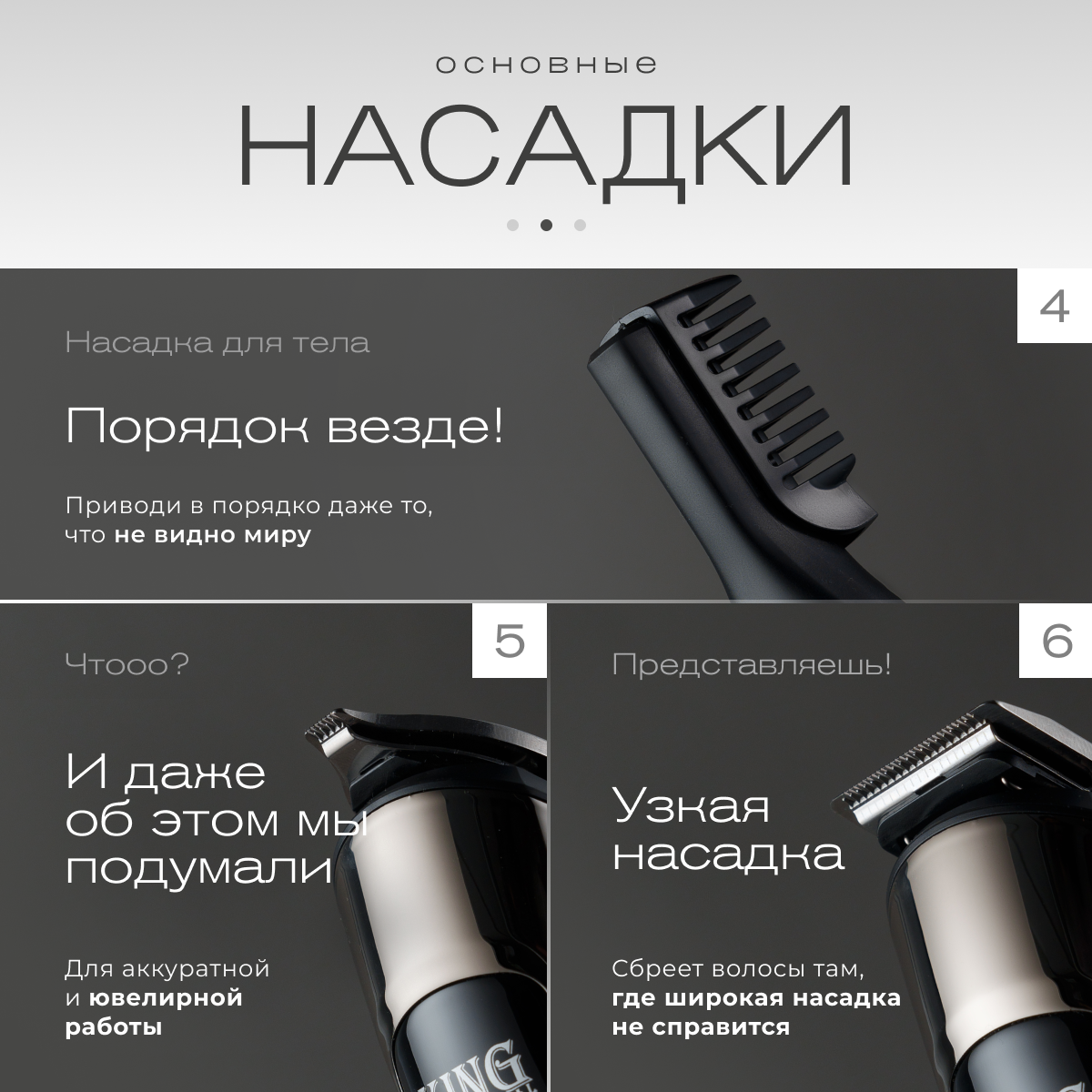 | Назначение | для бороды и усов / для бровей / для секущихся кончиков / для стрижки в носу и ушах / для стрижки волос / для тела |