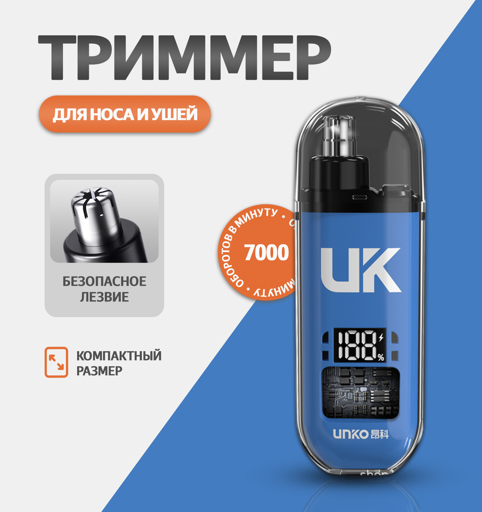 Триммер для стрижки волос в носу и ушах, компактный, с цифровым дисплеем и видимой печатной платой, цвет синий информация: