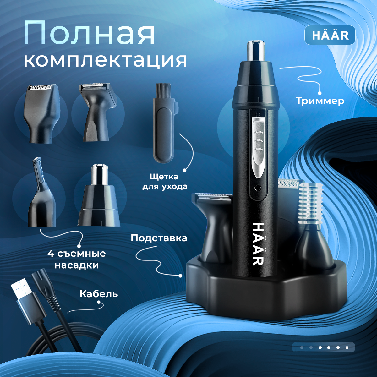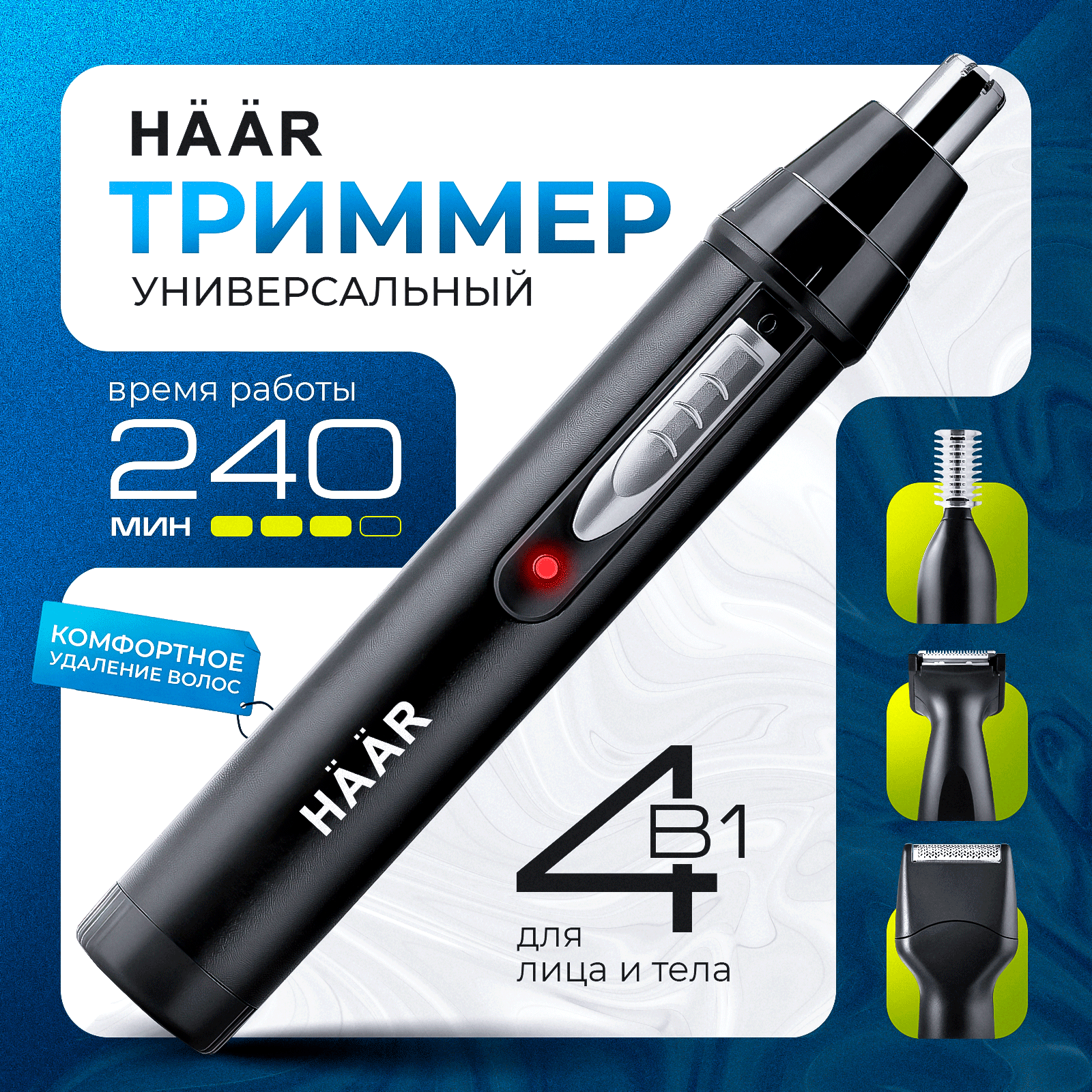 Триммер для носа 4в1 / HAAR AJ-461M / Беспроводной триммер для носа и ушей, бровей, бороды, интимных зон и окантовки информация: