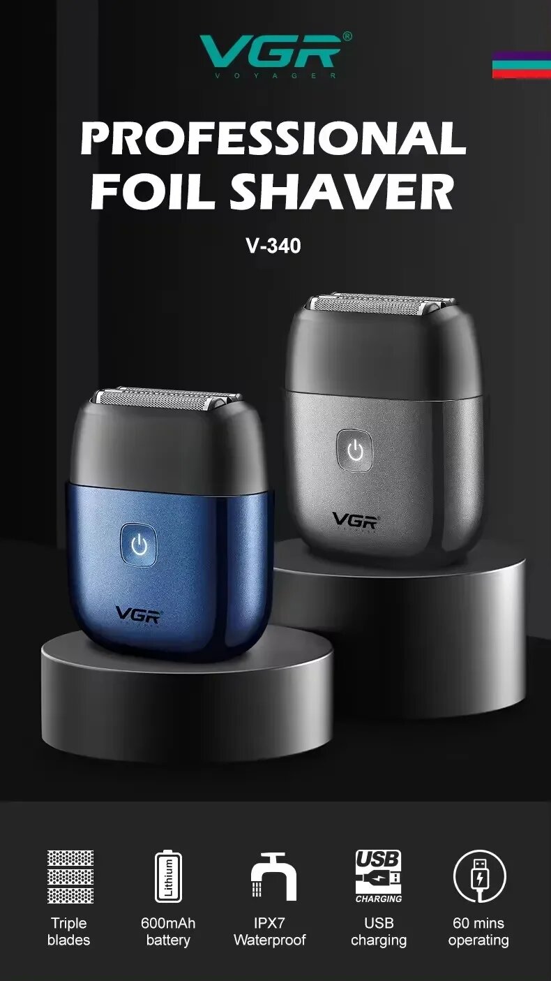 Мужская бритва VGR, ABS пластик, нержавеющая сталь, быстрая зарядка, до 60 мин информация: